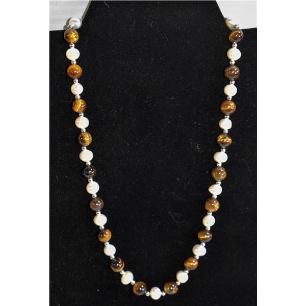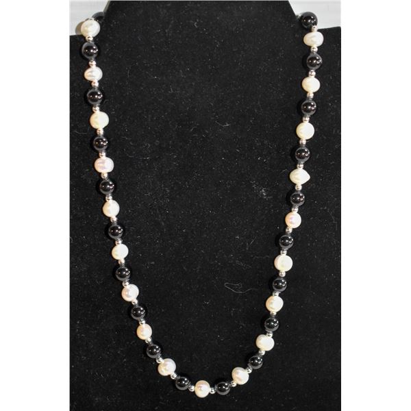 #265-NATURAL BLACK AGATE&FRESH WATER PEARL NECKLAC