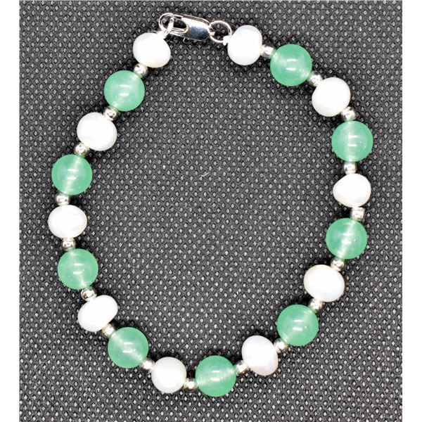 #281-FRESH WATER PEARL & GREEN JADE BRACELET