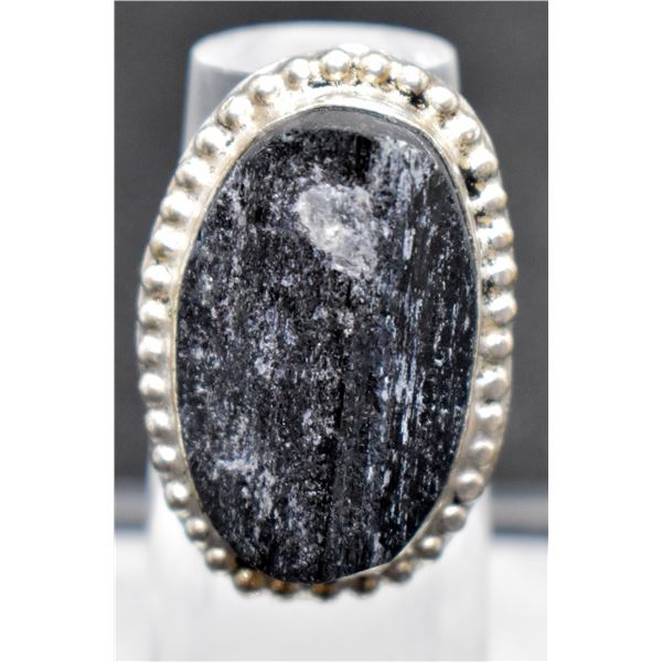 #56-NATURAL BLACK TOURMALINE (RAW) RING SIZE 6.25