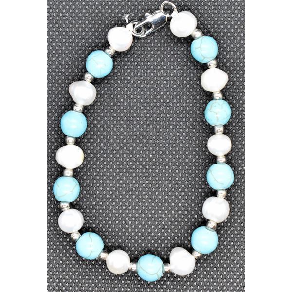 #288-FRESH WATER PEARL& BLUE TOURQOISE BRACELET