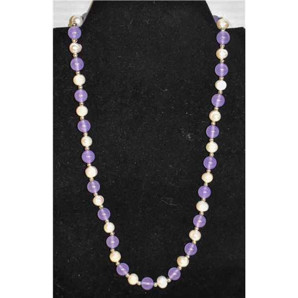 #248-NATURAL AMETHYST, FRESH WATER PEARL NECKLACE