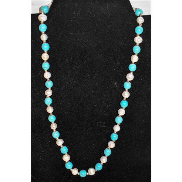 #257-FRESH WATER PEARL & BLUE TOURQOISE NECKLACE