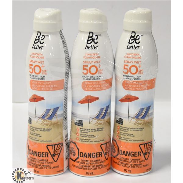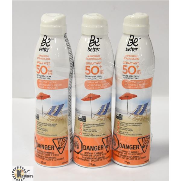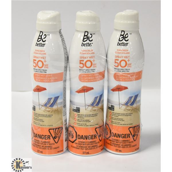 3 PACK BE BETTER SUN SCREEN SPRAY WET 50+ SPF