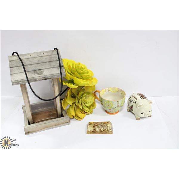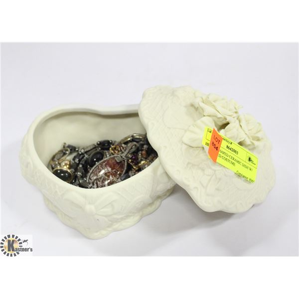HEART SHAPED CERAMIC DISH W/ ASSORTED COSTUME