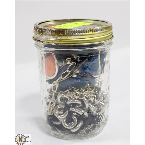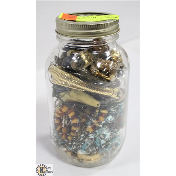 MASON JAR W/ ASSORTED COSTUME JEWELRY