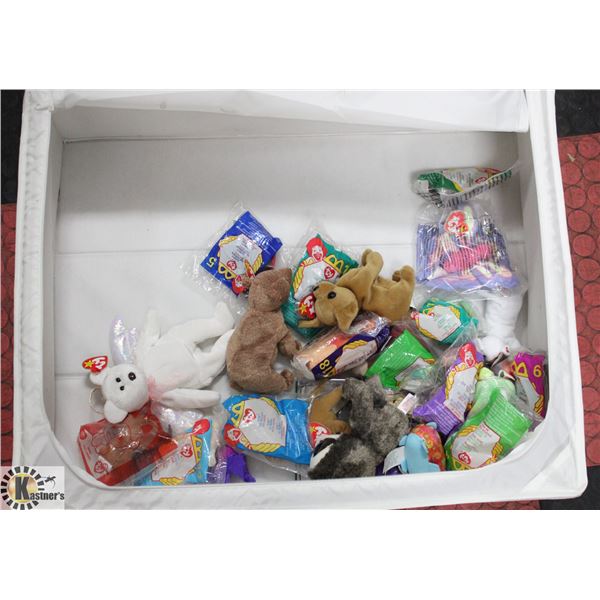 UNDER BED STORAGE W/ OLD TY MCDONALDS & BEANIES