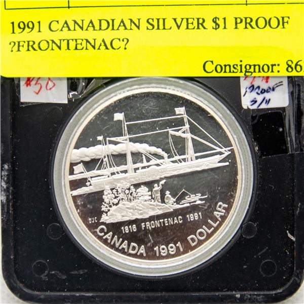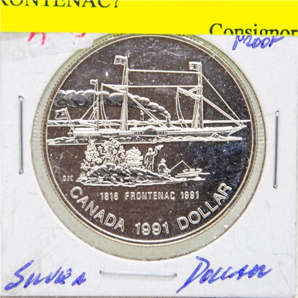 1991 CANADIAN SILVER $1 PROOF "FRONTENAC"