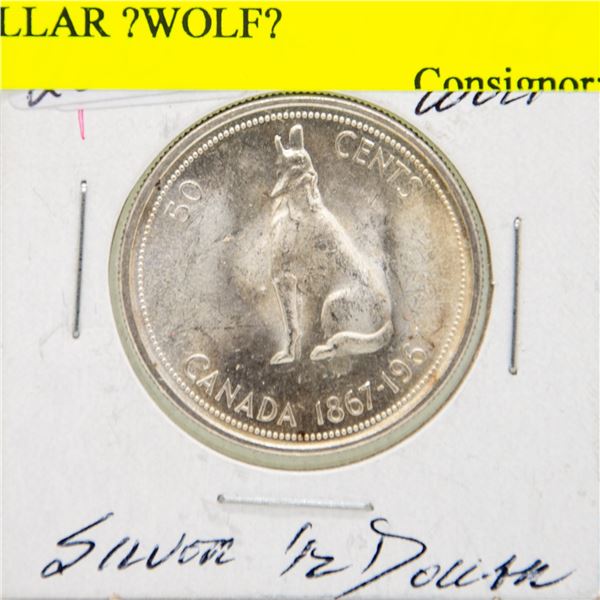 1967 CANADIAN SILVER HALF DOLLAR "WOLF"