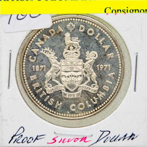 1971 CANADIAN SILVER $1 PROOF "BRITISH COLUMBIA"