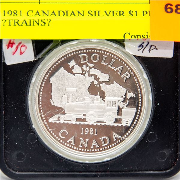 1981 CANADIAN SILVER $1 PROOF "TRAINS"