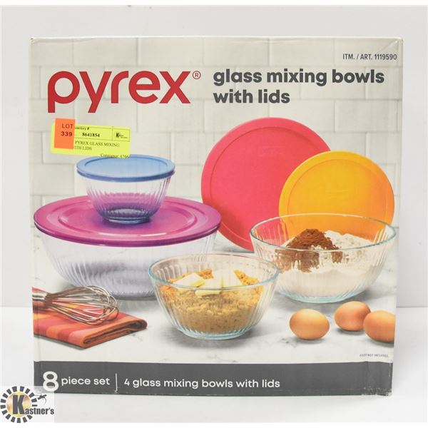 NEW 8 PC PYREX GLASS MIXING BOWLS WITH LIDS