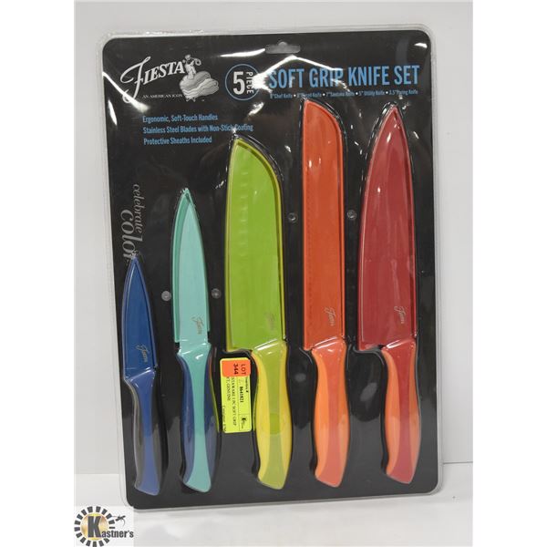 NEW FIESTA WARE 5 PC SOFT GRIP KNIFE SET,