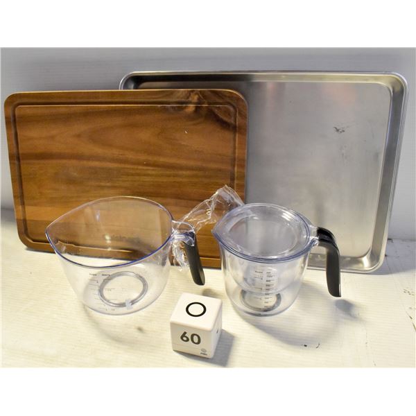 COOKIE SHEET,MEASURING CUPS + TIMER