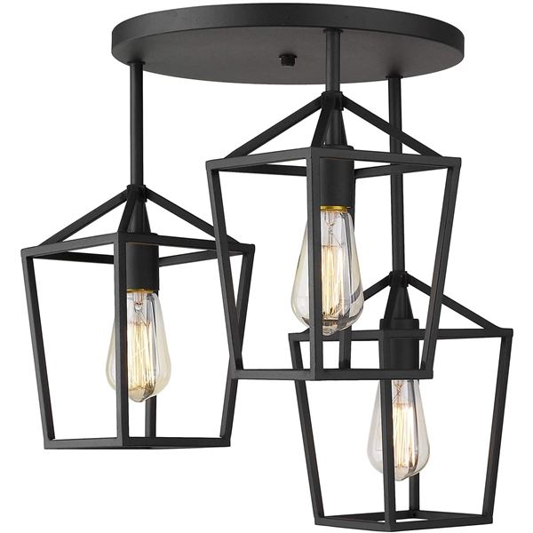 SEMI-FLUSH MOUNT, METAL CAGE IN MATTE BLACK, MODEL 20065D2-3BK, ALL PARTS CONFIRMED, INSTRUCTION MANUAL INCLUDED, AMZ SES