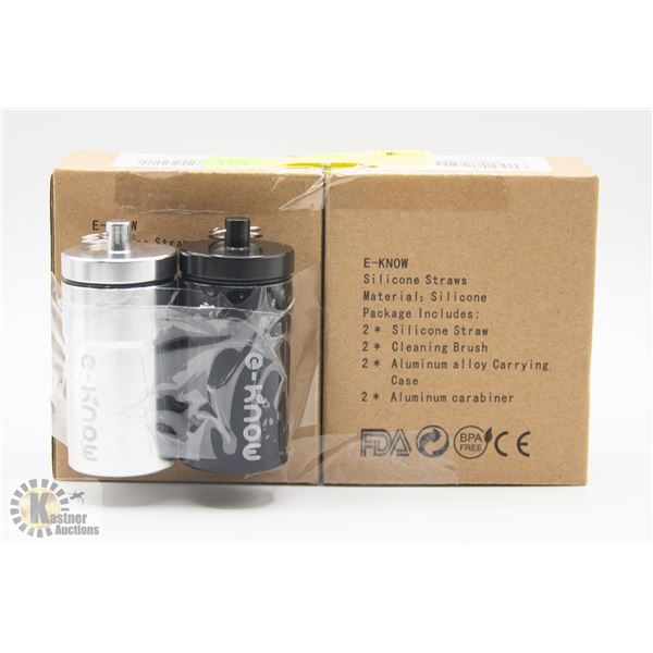 2 PACK SILICONE STRAWS, CLEANING BRUSHES, ALUMINUM