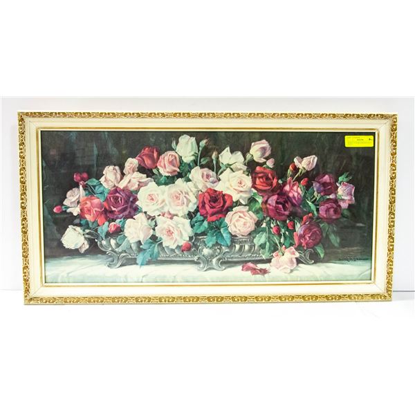 BASKET OF ROSES FRAMED PRINT 33" X 17"