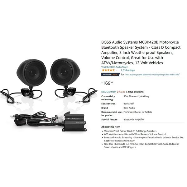 BOSS AUDIO SYSTEMS BLUETOOTH MOTORCYCLE SPEAKER