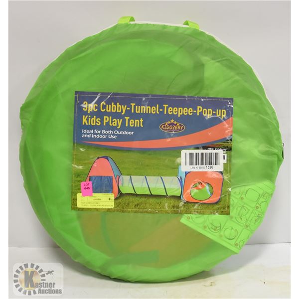 NEW 3 PIECE CUBBY TUNNEL-TEEPEE-POPUP KIDS PLAY