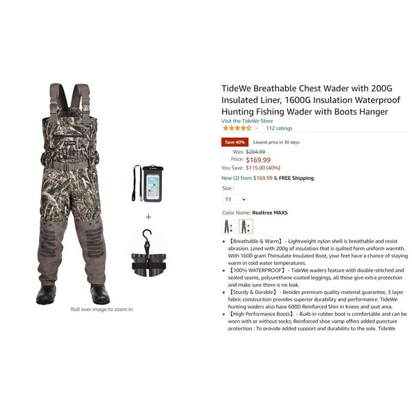 TIDEWE BREATHABLE CHEST WADER WITH 200G INSULATED708 - TIDEWE BREATHABLE CHEST WADER WITH 200G INSULATED