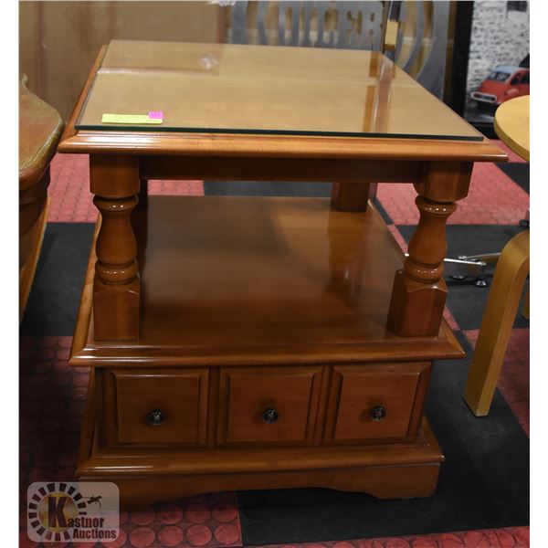 PAIR OF WOOD END TABLES W/ GLASS TOP PROTECTOR711 - PAIR OF WOOD END TABLES W/ GLASS TOP PROTECTOR