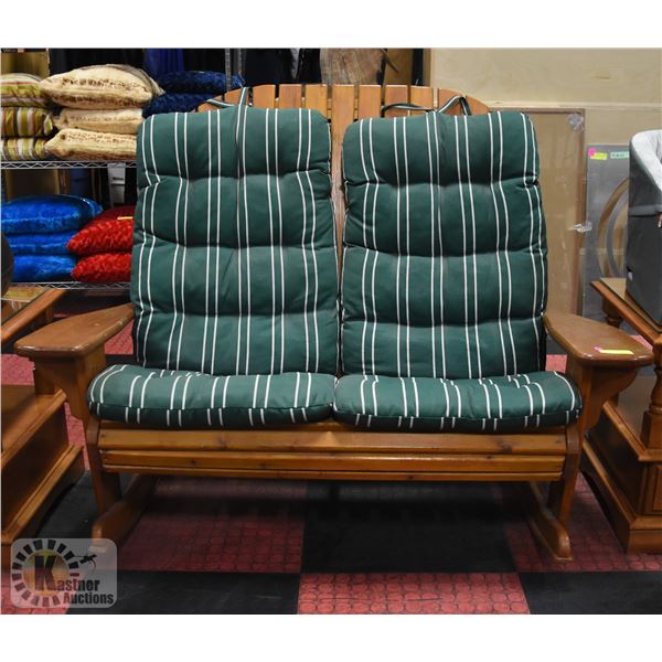 WOOD 2 SEATER ROCKING OUTDOOR BENCH WITH CUSHIONS712 - WOOD 2 SEATER ROCKING OUTDOOR BENCH WITH CUSHIONS