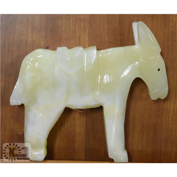 HAND CARVED WHITE ONYX DONKEY DECOR PIECE