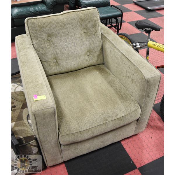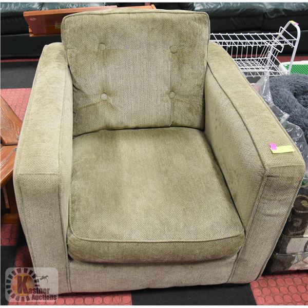 AUTUMN OLIVE TONE FABRIC CHAIR W/ FOOT STOOL