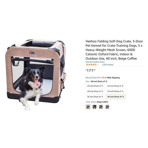 VEEHOO FOLDING SOFT DOG CRATE, 3-DOOR PET KENNEL