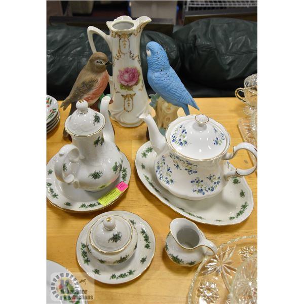 LOT OF CHINA TEA POT, SUGAR, MILK, SAUCER, CERAMIC