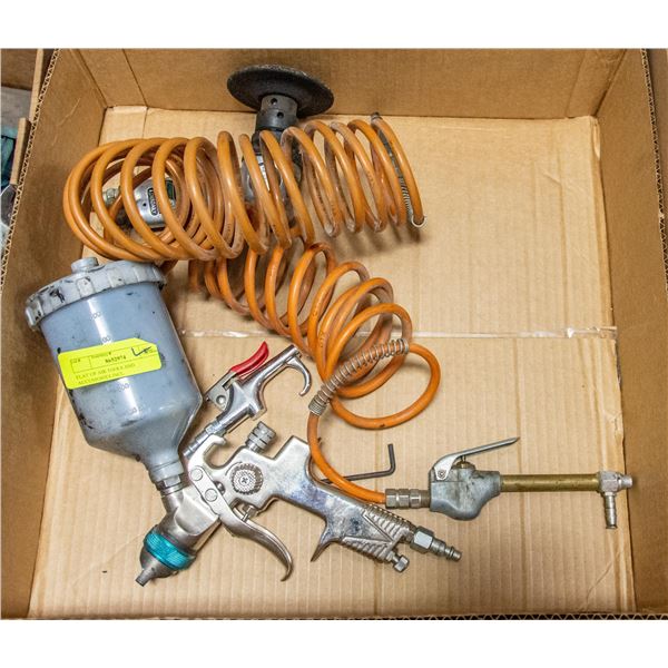 PAINT SPRAYER, COIL AIR HOSE WITH PISTOL BLOWER, AIR GRINDER, AIR BLOWER, ETC.