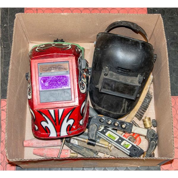 BOX OF WELDING/SHOP TOOLS INCL. TWO WELDING