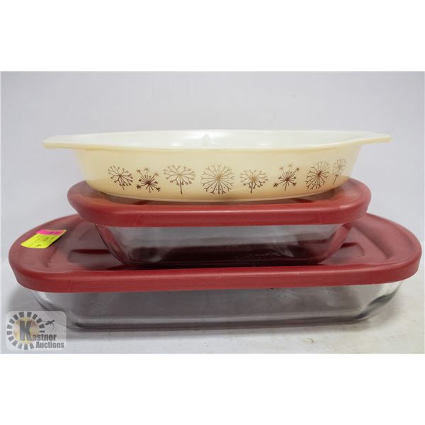CORNINGWARE AND 2 ANCHOR BAKING DISHES
