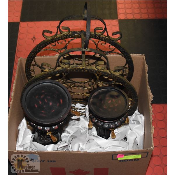 VINTAGE WINE RACK & SET OF 2 PILLAR CANDLE