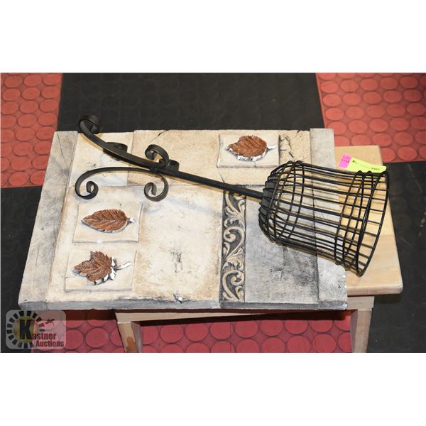 STEP STOOL WITH STONE PICTURE AND CANDLE HOLDER