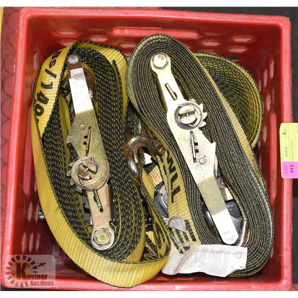 BOX OF 3 RATCHET STRAPS WITH CHAIN & HOOK