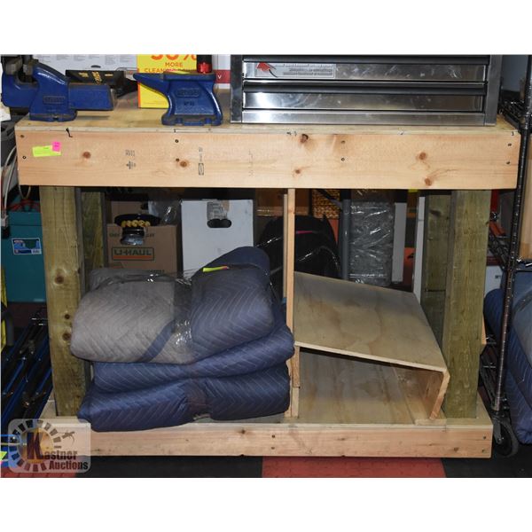 WOOD TOOL BENCH W/ VISE ATTACHED APPROX 48" X 22"