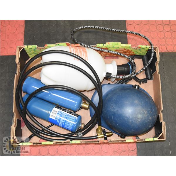 LOT OF A SPRAYER, BBQ HOSE ADAPTER, HARD HAT,