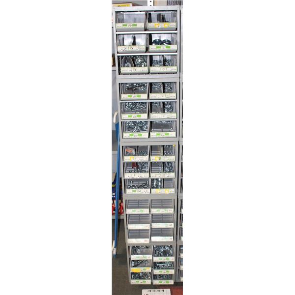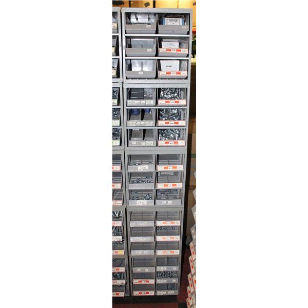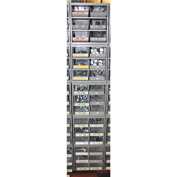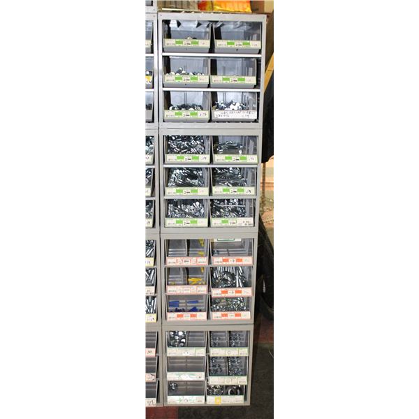 LOT OF 4 STACKABLE PARTBINS WITH ASSORTED HARDWARE