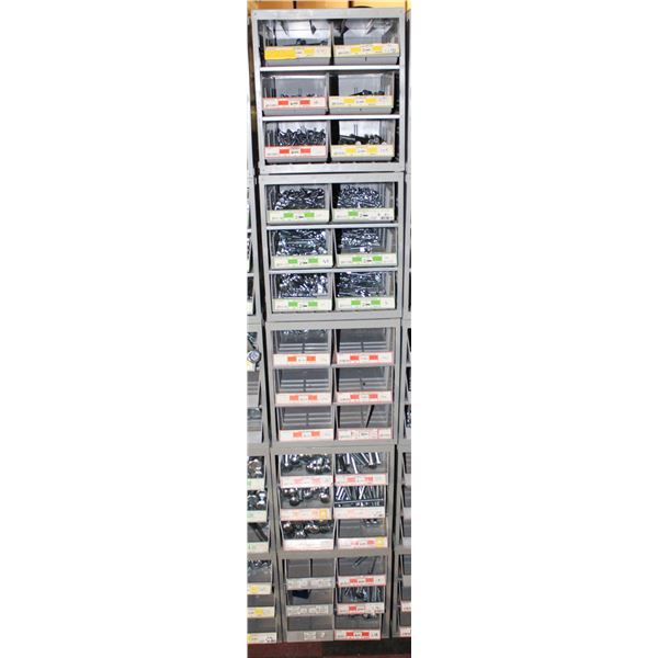LOT OF 5 STACKABLE PARTBINS WITH ASSORTED HARDWARE