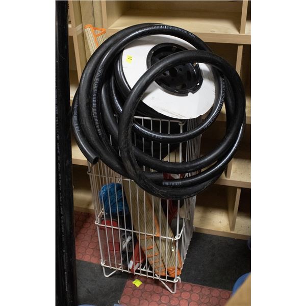 METAL BASKET WITH HOSE & THER MISC ITEMS