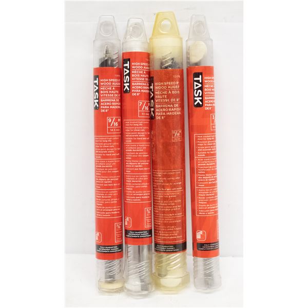 LOT OF 4 ASSORTED TASK HIGH SPEED WOOD AUGER BITS
