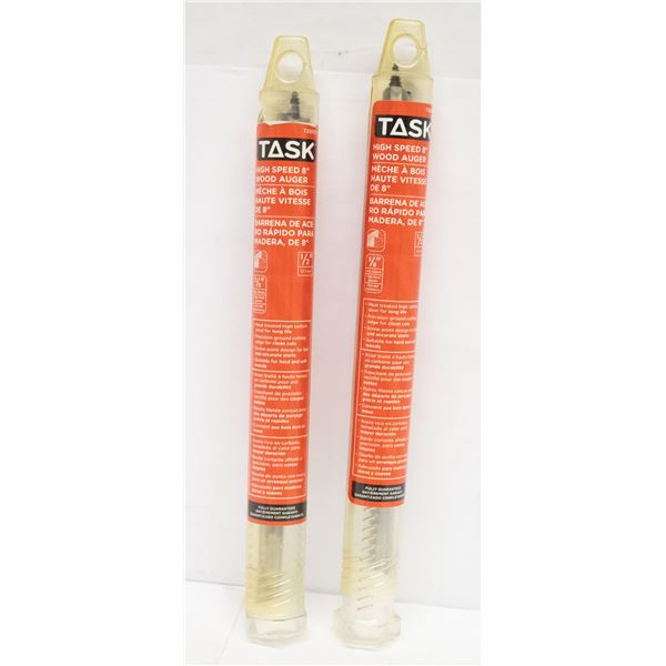 2 TASK HIGH SPEED 8" WOOD AUGER BITS 1/2". 3/8"