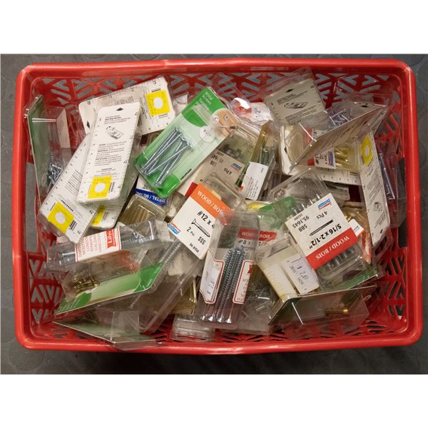 BOX WITH PACKAGES OF ASSORTED WOOD & METAL SCREWS
