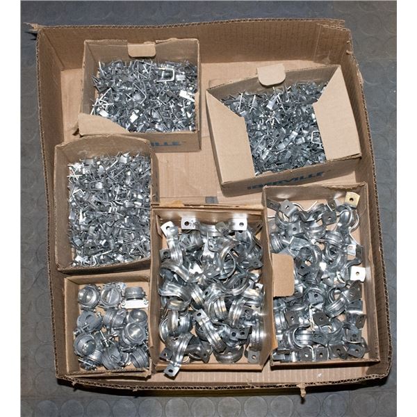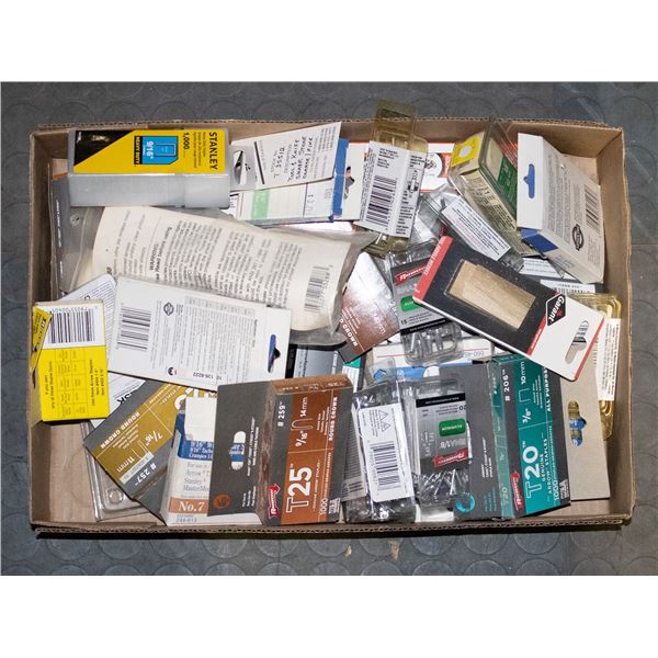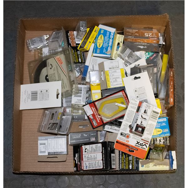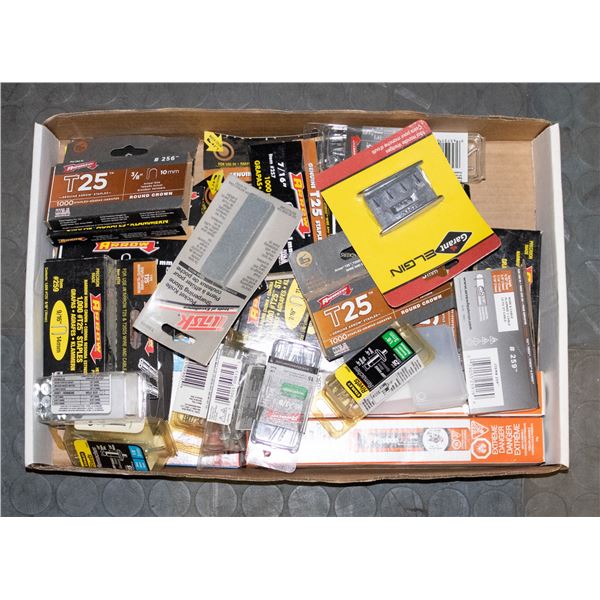 FLAT OF ASSORTED STAPLES, HARDWARE & MORE