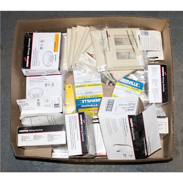 LARGE FLAT OF ASSORTED FUSES, SWITCHES, OUTLETS,