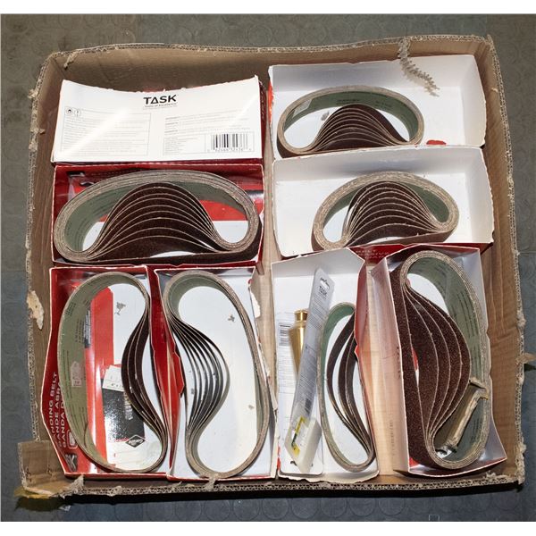 LARGE FLAT OF ASSORTED GRIT SANDING BELTS