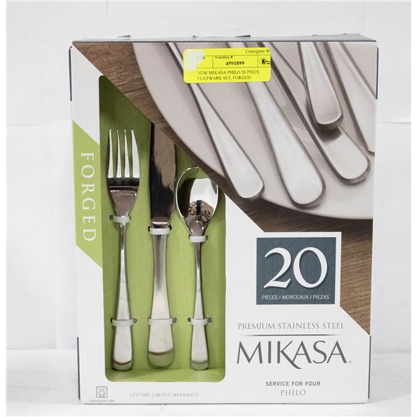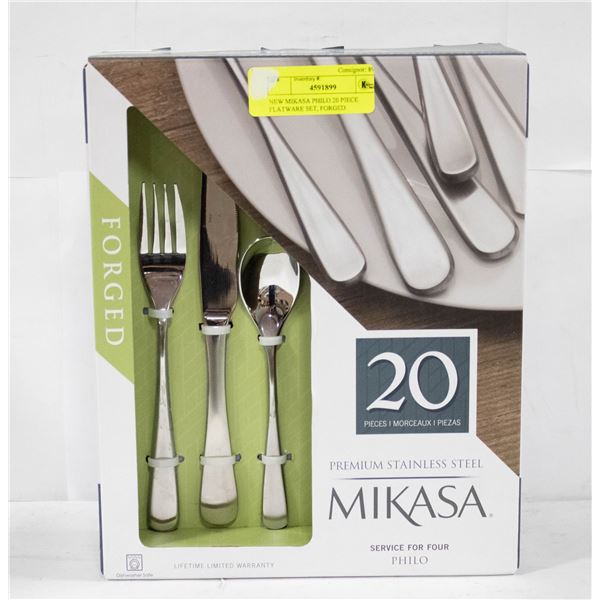 NEW MIKASA PHILO 20 PIECE FLATWARE SET, FORGED