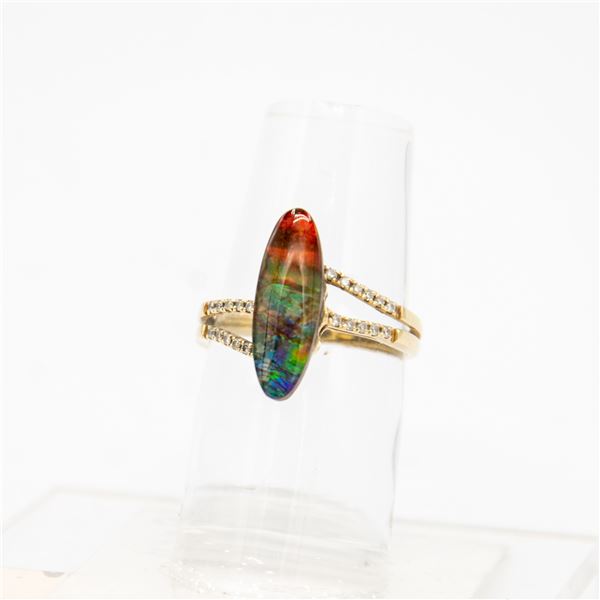 14K YELLOW GOLD AMMOLITE AND DIAMOND RING SIZE 8