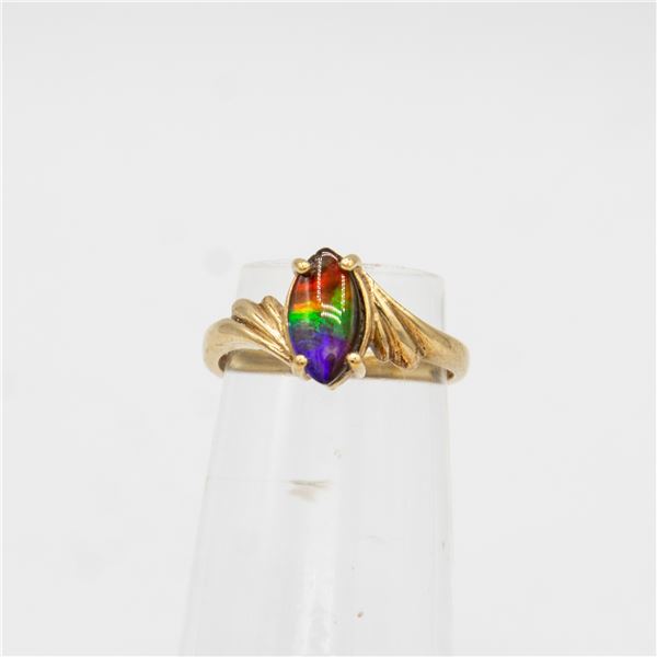 14K YELLOW GOLD AMMOLITE RING SIZE 5