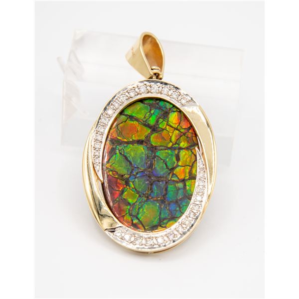 14K WHITE GOLD AMMOLITE AND DIAMOND PENDANT